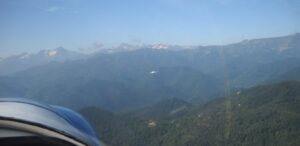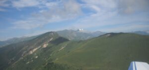 In un’attimo siamo in volo sulle nostre colline, verso il col de Larche, passaggio obbligato per andare verso Gap. Quelle sotto di noi sono le colline del saluzzese e noi stiamo volando verso la valle Stura. Si sente vagamente qualche ultraleggero sulla 130, ma é ancora presto per la grande baraonda, piuttosto, quando saremo più in alto sentiremo i francesi (per loro la 130 é la frequenza in uso in montagna) che stanno volando dalle parti del Monte Bianco.